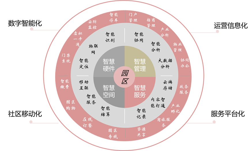 博安智控构建以智慧园区建设中运营信息化、服务平台化、社区移动化、数字智能化等应用领域为重点服务内容的“四化” 多层级、立体式智慧园区架构。将线下服务搬到线上,打造企业与个人在线服务中心,让园区内企业与个人以最便捷的方式享受到园区提供的软配套支撑。